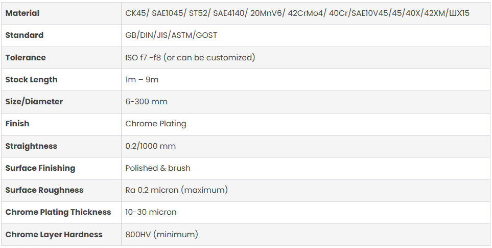 हार्ड क्रोम प्लेटेड शाफ्ट की विशिष्टता