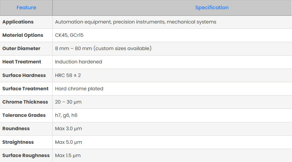 खोखले रैखिक शाफ्ट की विशिष्टताएँ